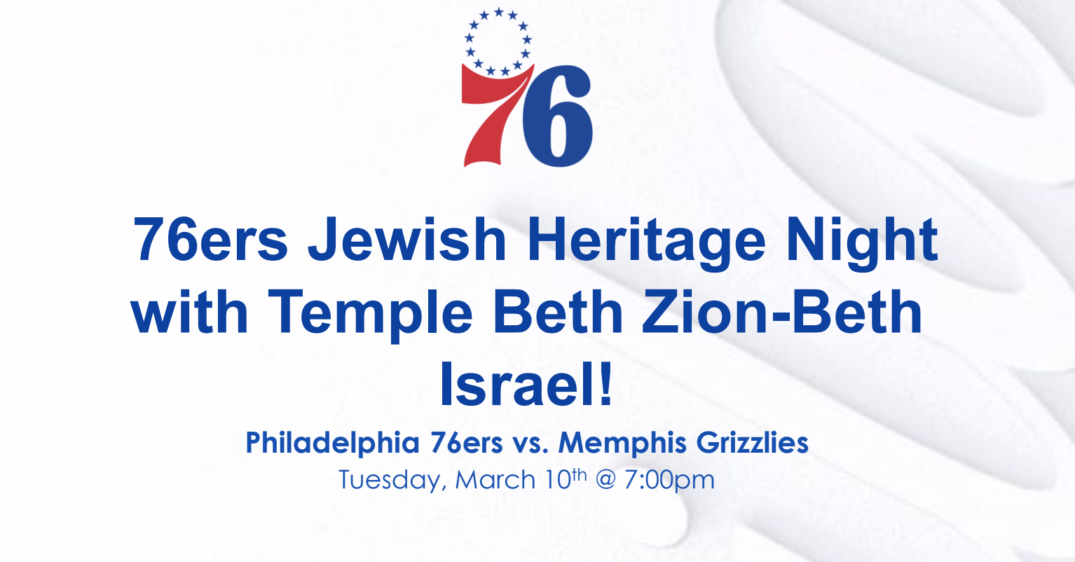 Come join Temple Beth Zion-Beth Israel as they cheer on the 76ers at the Xfinity Mobile Arena! Tickets are $40 each - click here to get yours! Included with ticket... Read More